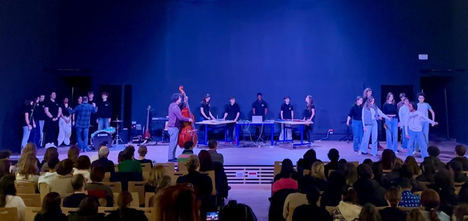 Une performance a eu lieu en salle polyvalente le 5 décembre, marquant la fin du projet ¿ Ralentir ?, une initiative qui a rassemblé les élèves de seconde 10 (Evelyne Soulier, professeure de français) et de terminale option musique (Christèle Bossu, professeure de musique) autour d’une création collective. Ce projet innovant, initié au cours de l’année scolaire 2023-2024, a croisé l’écriture, le théâtre, la musique instrumentale, vocale et électronique. Après plusieurs semaines de travail, les élèves ont offert une performance en salle polyvalente durant laquelle leur concentration et leur engagement se sont pleinement manifestés.