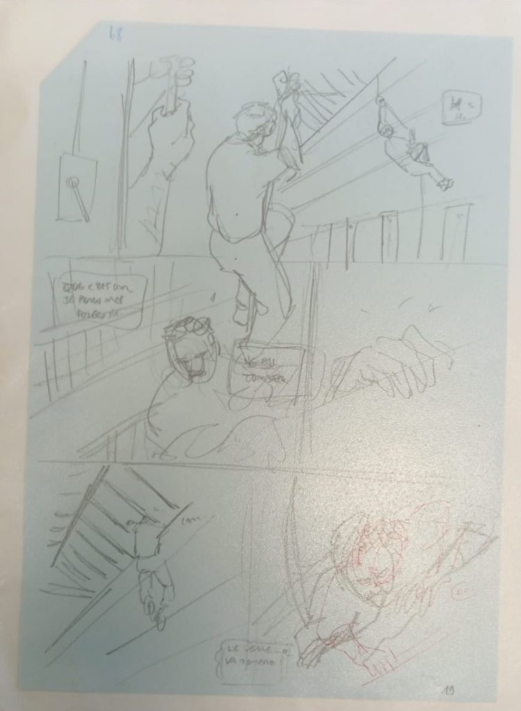 Dans un second temps, Mathieu Rebière a montré aux élèves un court texte avec quelques références (comme la prison de Montluc à Lyon, ainsi que le visage d’une gueule tordue) afin qu’ils puissent créer le croquis d’une planche de BD. Ayant tous le même texte, mais une imagination unique, cette classe a pu observer les différentes planches qui ont découlé de cet exercice.