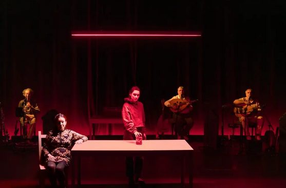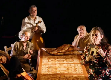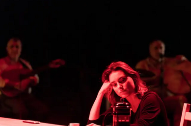 Laurent Fréchuret est venu à la rencontre de son public quelques minutes avant le début de la dernière représentation face à des élèves. Ce fut l’occasion pour lui de rappeler l’histoire de son spectacle. Quelques minutes plus tard, les lumières s’éteignent et les comédiennes Christine Brotons et Lara Raymond, entrent en scène, accompagnées du trio de musiciens franco-syriens Bab Assalam, Khaled et Mohanad Aljaramani et Raphaël Vuillard.
