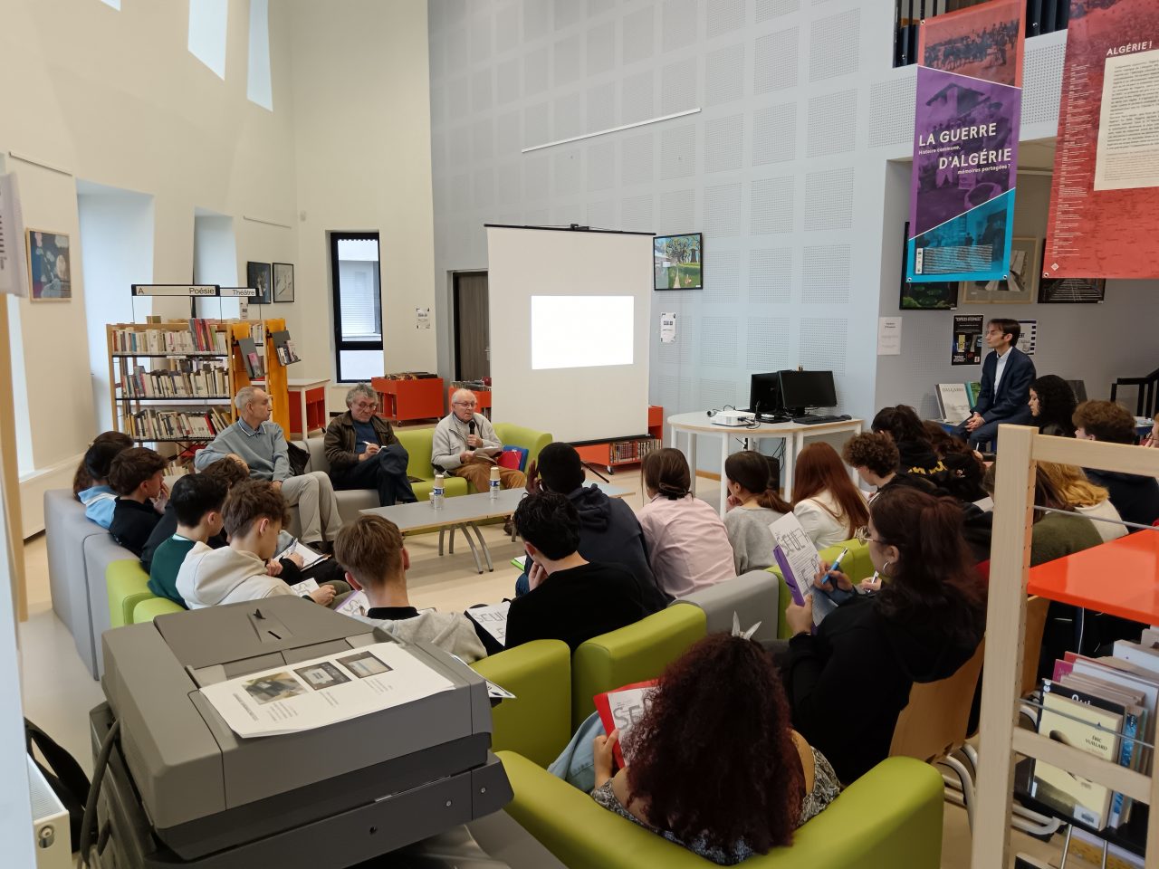 - 10 Mars 2026 : La classe assiste à une rencontre avec 3 acteurs de la guerre d’Algérie : Alain Flour, un « pied noir », Pierre Carlier, un appelé de guerre et Allaoua Bakha, un membre du FLN. Ces 3 personnes ont partagé leurs mémoires, leur vie durant cette période afin de transmettre l’histoire.
