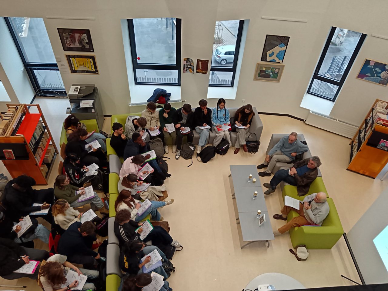 - Décembre 2025 : Tout d’abord, la classe de Terminale a rencontré Mathieu Rebière, dessinateur, auteur et scénariste français. Cette rencontre s’est effectuée dans la contextualisation de sa bande dessinée L’Évasion, sortie en 2021. Celle-ci aborde l’évasion d’un prisonnier de la prison de Montluc à Lyon dans les années 40.