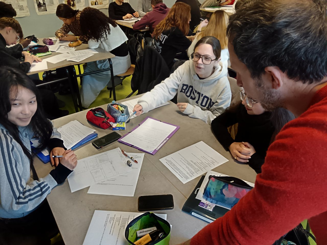 Mardi 17 Mars, les élèves de Terminale 6 ont commencé à travailler sur leurs planches de BD avec Mathieu Rebière, l’occasion pour lui de donner quelques conseils aux élèves dans la démarche de création.